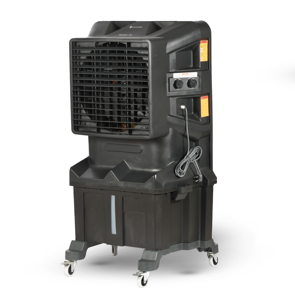 Compact and powerful air cooler with a 75L tank and 18-inch fan for effective cooling.